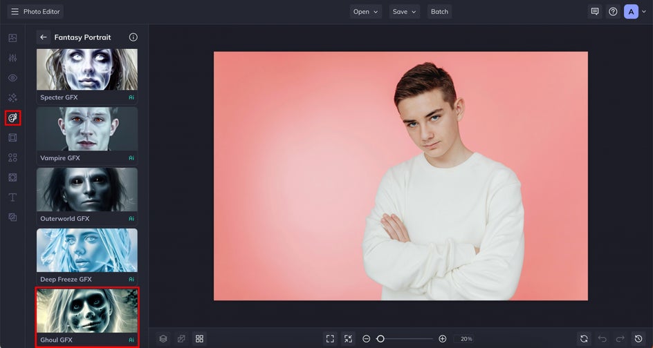 With Halloween approaching, we’ve dug up some evil inspiration to create a frightful and sinister ghoul photo filter for your portraits. With BeFunky’s Fantasy Portrait AI filters, you can easily turn yourself into a fiend worthy of envy. If you’ve been on the prowl for a new look, the AI-powered fantasy filters are just what you need.