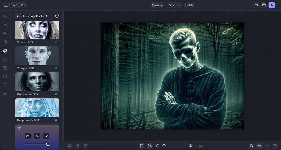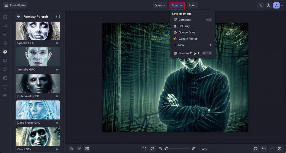 Now that you have everything you need to become a sinister monster, it's time to bring your eerie visions to life. Whether you want to haunt cemeteries or explore even darker transformations, BeFunky’s Fantasy Portrait AI effects have you covered.