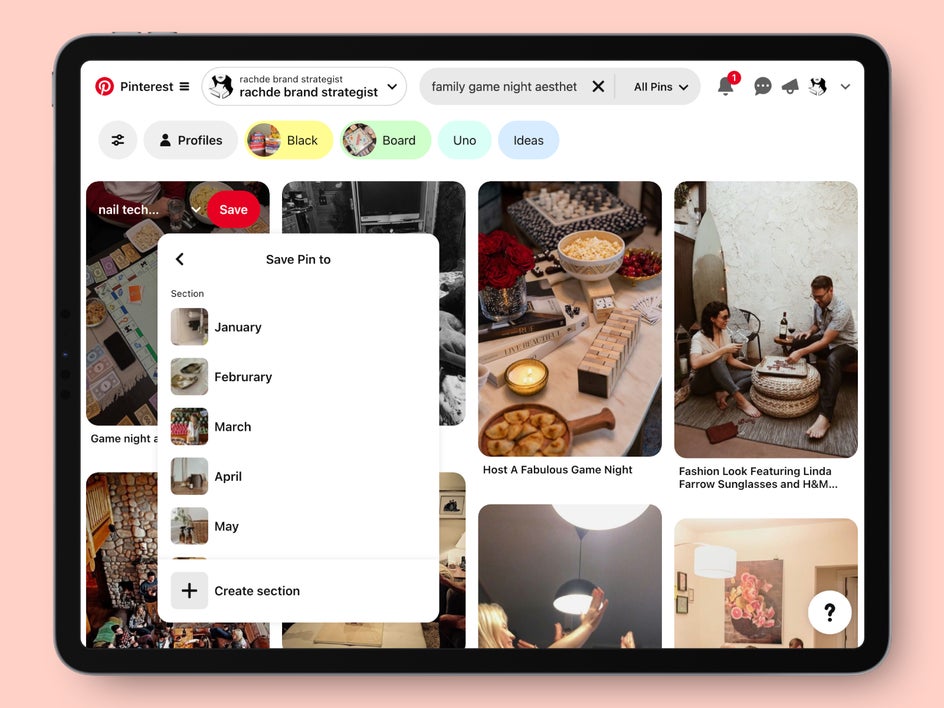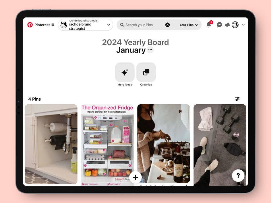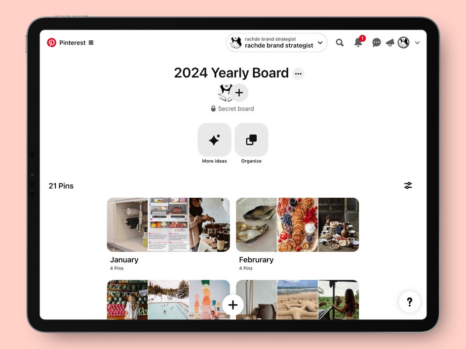 You can create a board for the year by topics, but if you need help organizing your life, you can create a yearly board and split it up by month, with the main board being “2024 Yearly Board” and the Pinterest board sections being the twelve months. This board will act as your yearly snapshot.