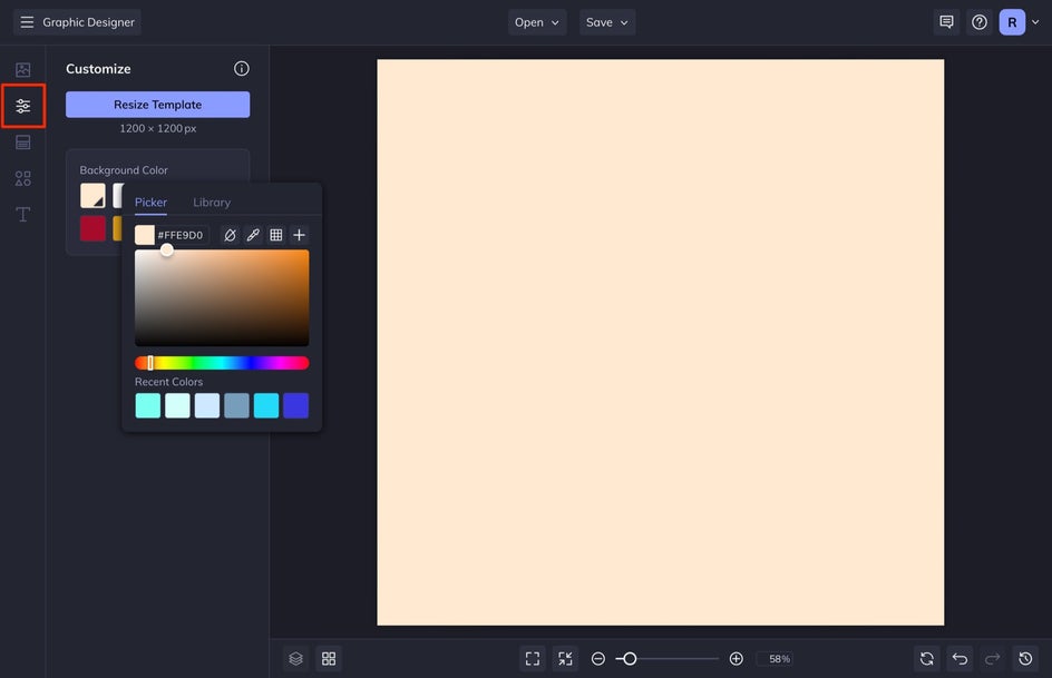 Select Customize from the left-hand menu and then select the first swatch to choose the color you want for your background. Use the color slider to choose the hue and then click your mouse over the specific shade you want.