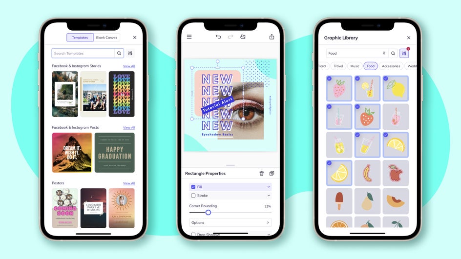 The Graphic Designer is a completely new addition to the mobile app. Customize templates and create original designs in just a few taps. BeFunky has a massive library of professionally designed templates – including those for brochures, postcards, social media posts, and more. So you’re sure to find something you like. You can now take your projects even further on the mobile app with an updated graphics library and hundreds of free fonts at your disposal. Change up the color palette, swap in your own photos, and add a unique message with our easy-to-use design tools.
