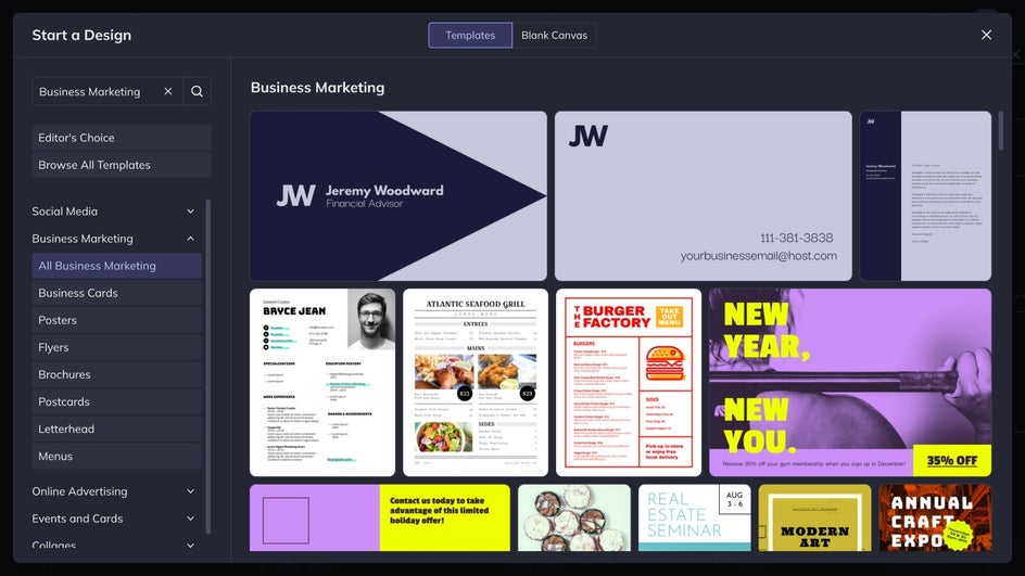 For anything that needs to be designed, you can count on BeFunky's Graphic Designer. You can create custom-sized canvases, use a free template, or make your own using the expansive Graphics Library. You can design all of your social media posts, all the graphics you need for your website, or even for business cards! BeFunky has a vast selection of stock photos that you can use for free for all your needs!