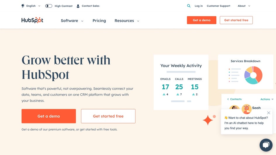 HubSpot provides a powerful and user-friendly website builder that allows you to create and customize your website without any coding knowledge. You can choose from a variety of templates to create a visually appealing website that reflects your brand, you can even add your own designs that you create with the Graphic Designer.