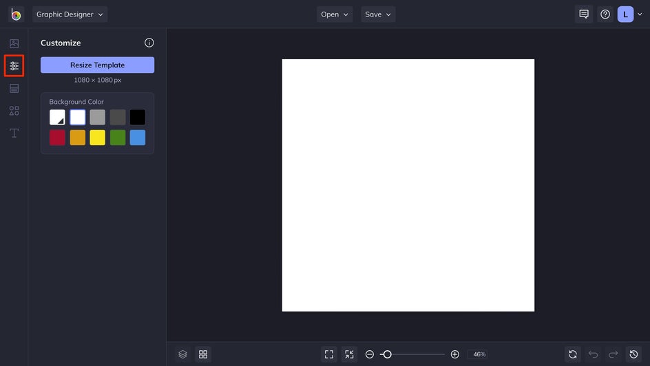 If you’re designing a graphic Pinterest board cover, then start by clicking on the Customize icon and select a background color.
